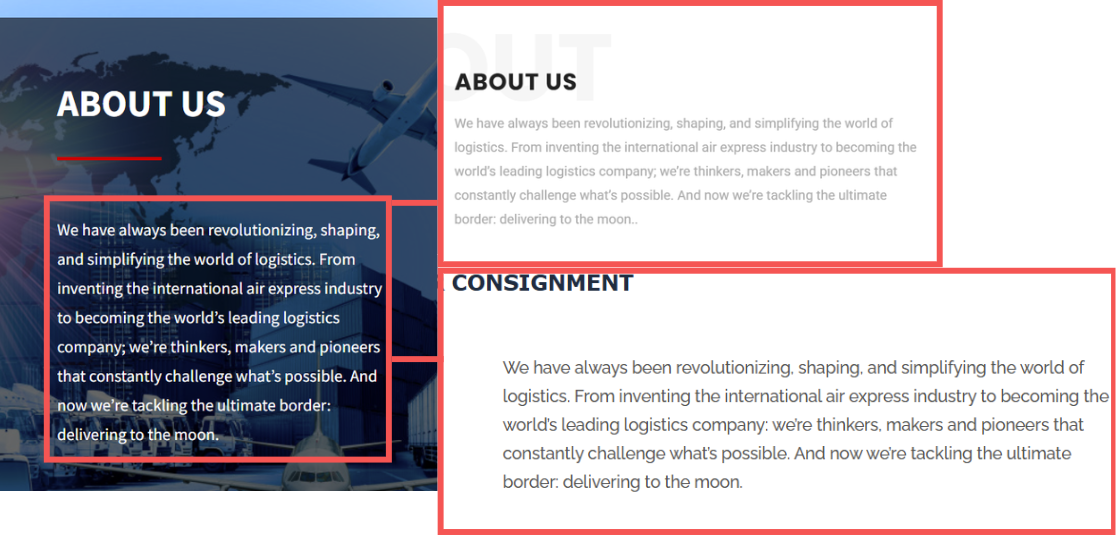 Comparison of the “About Us” content of multiple discovered courier-themed phishing page.