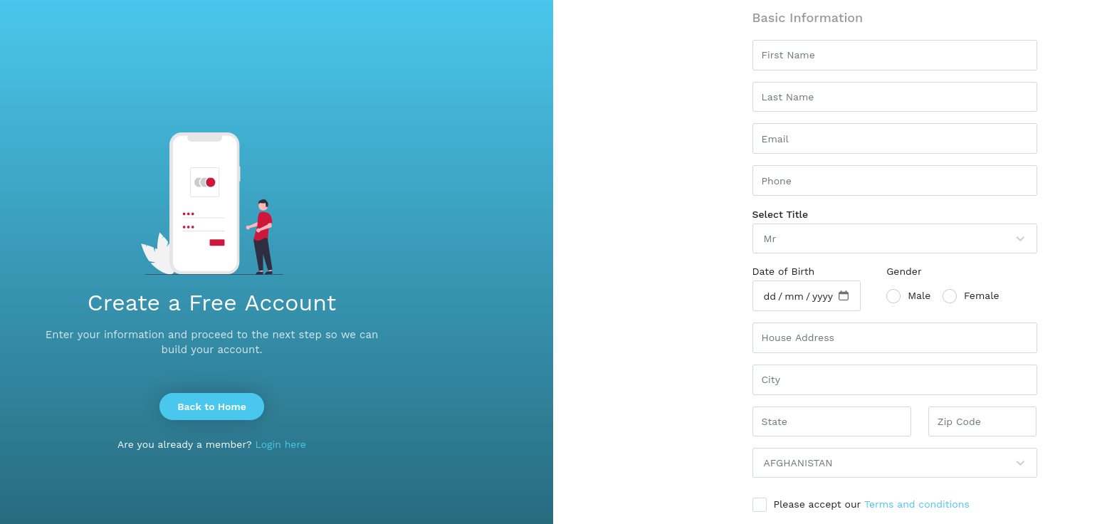 The registration page