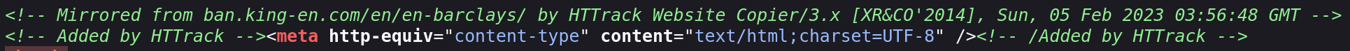 The phishing page source code indicates the use of the HTTrack website copier to replicate content from external pages, which are likely controlled by the same threat actor. This behaviour suggests a templated approach to infrastructure deployment, enabling rapid creation and reuse of phishing pages with minimal modification. Such tooling is commonly associated with lower sophistication phishing operations, where reliance on publicly available cloning utilities reduces development effort but also introduces identifiable artefacts. In contrast, more advanced phishing kits typically employ server-side rendering, dynamic content generation, or obfuscation techniques to hinder detection and attribution.